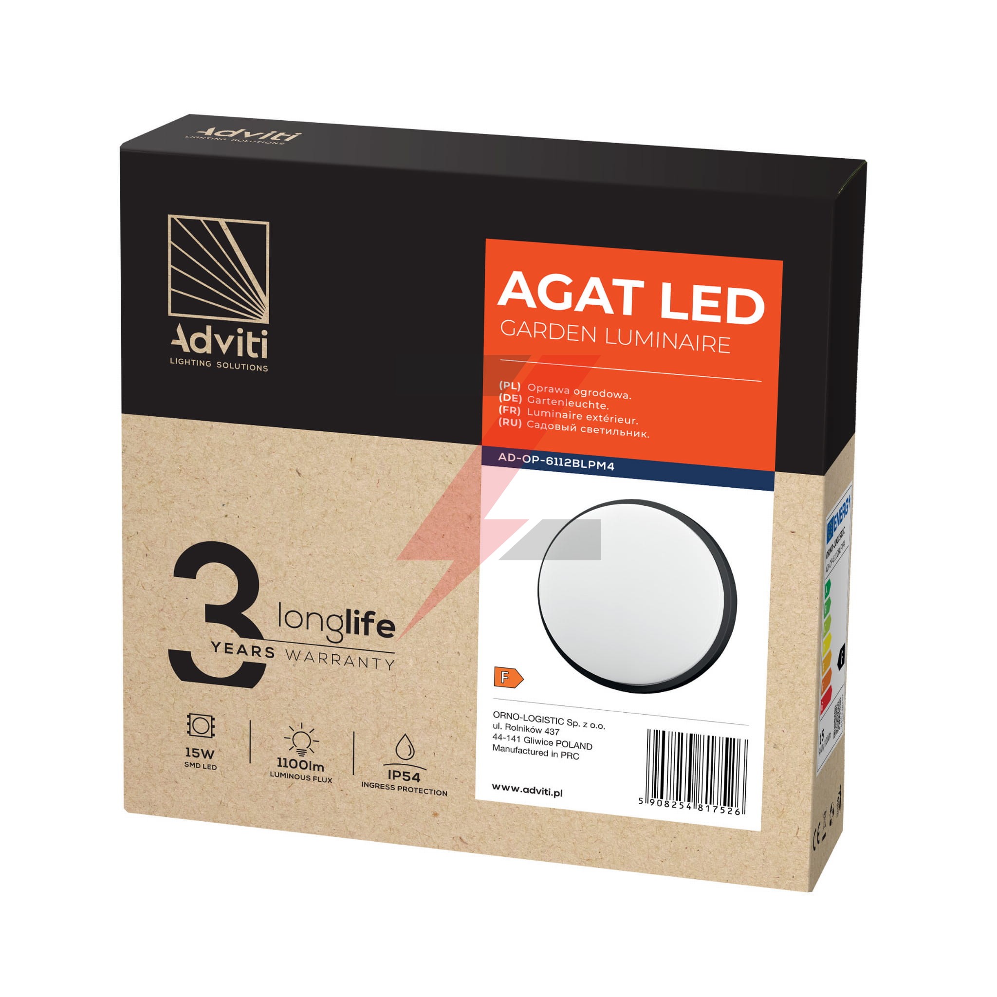AGAT LED 15W, oprawa ogrodowa, 1100lm, IP54, 4000K, czarna,AD-OP-6112BLPM4