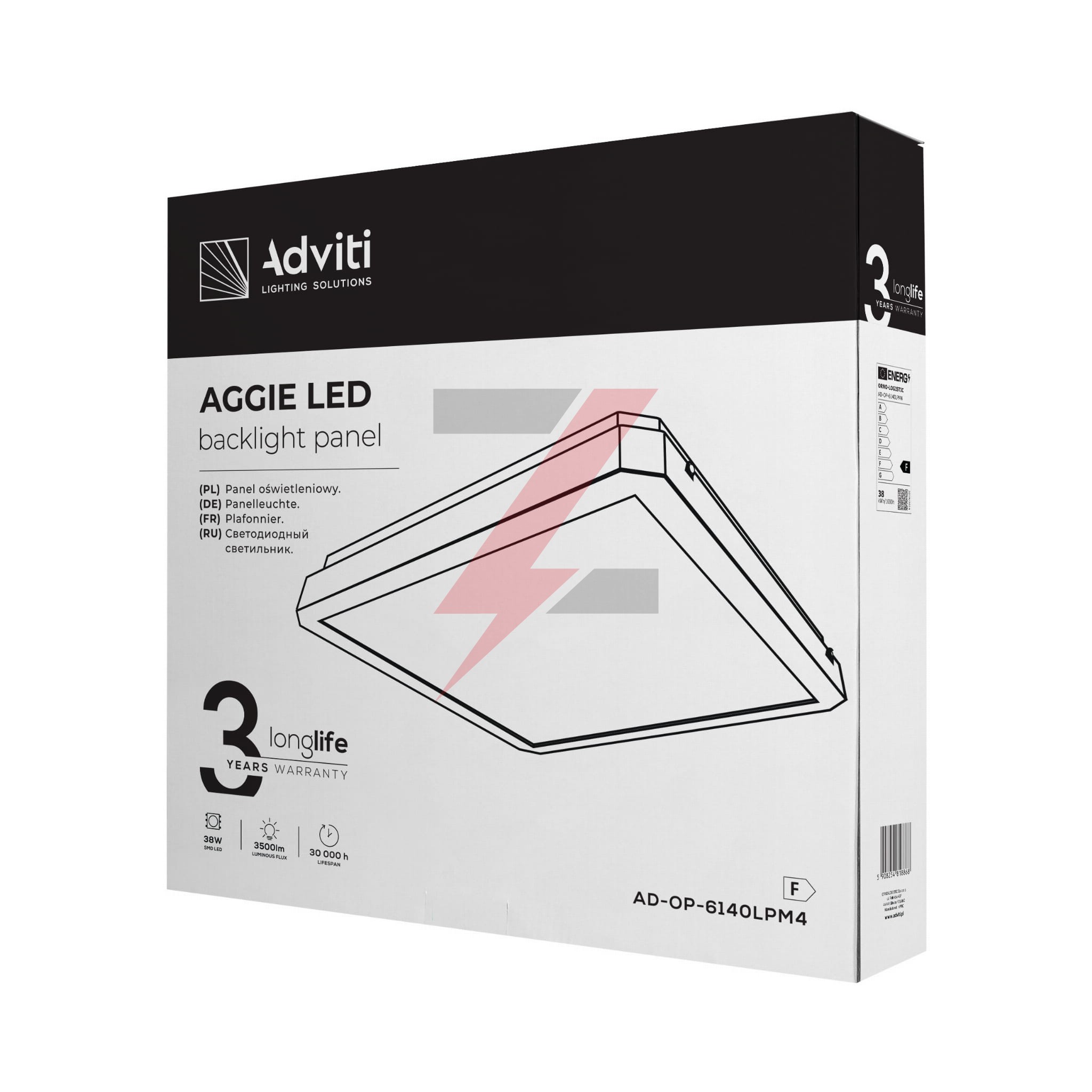 AGGIE LED 38W oprawa oświetleniowa, 3500lm, IP20, 4000K, stalowa obudowa+PC,AD-OP-6140LPM4
