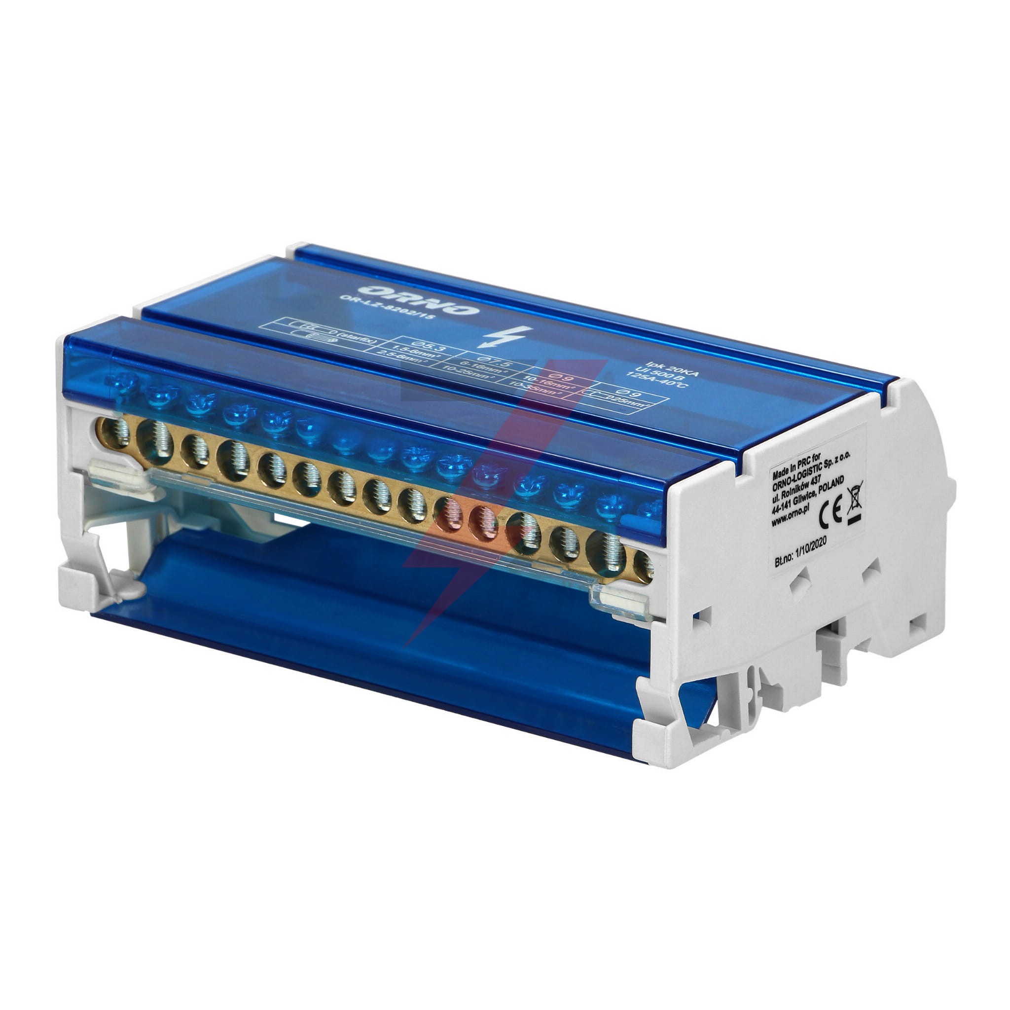 Blok rozdzielczy 4-rzędowy, 15 przewodów,OR-LZ-8202/15