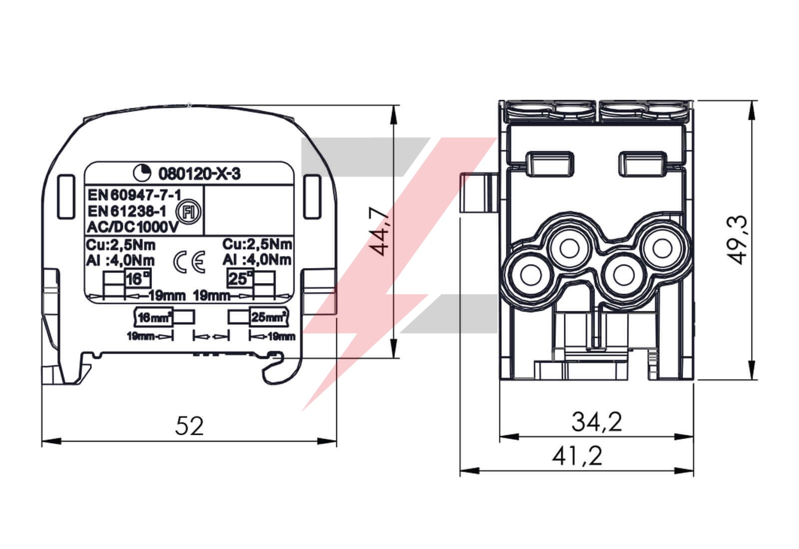 Blok rozdzielczy-odgałęźny Al/Cu SCB 25-2 (80120) SIMBLOCK jednobiegunowy 2x25mm2 szary 81505002
