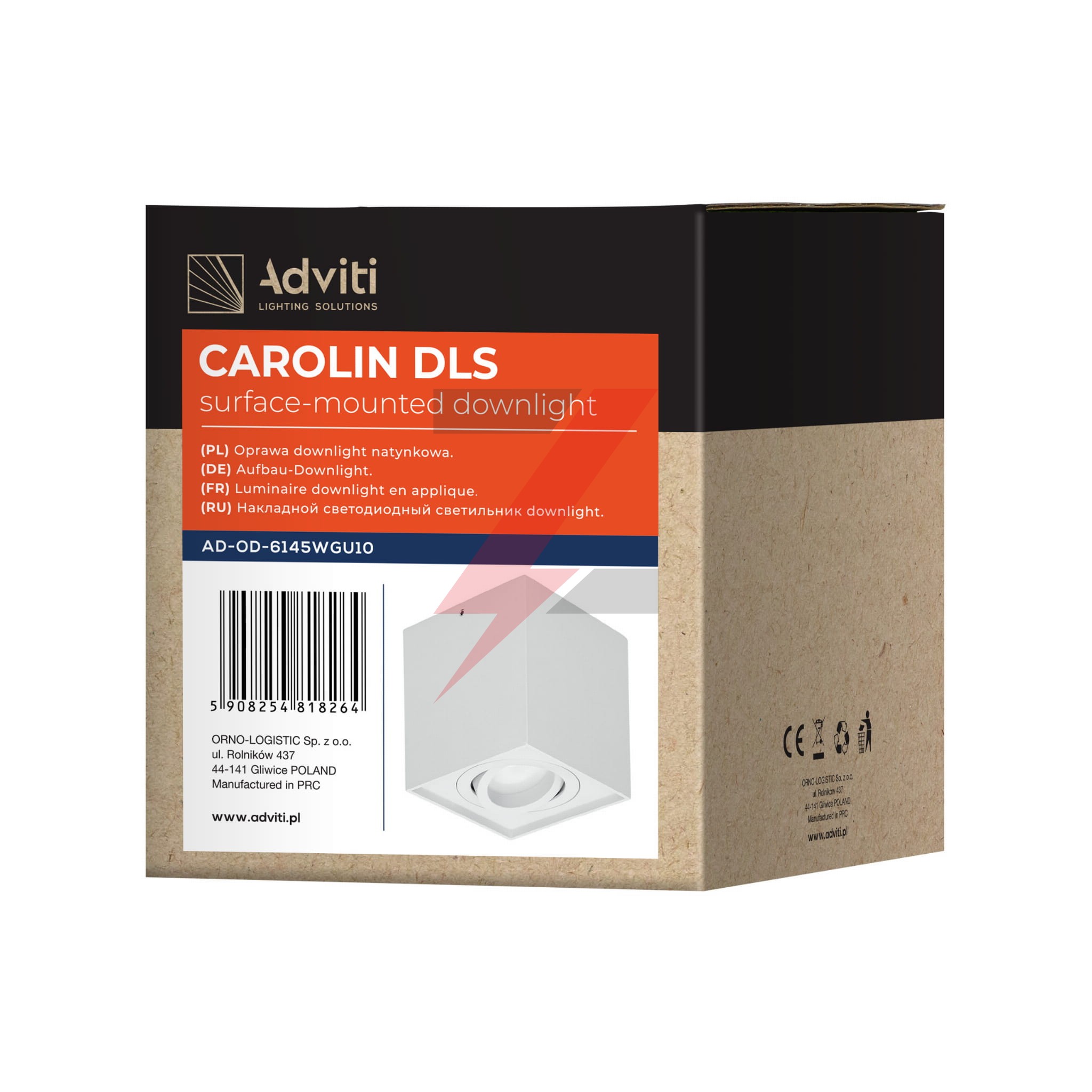 CAROLIN DLS GU10 downlight max 35W, IP20, kwadrat, biały,AD-OD-6145WGU10