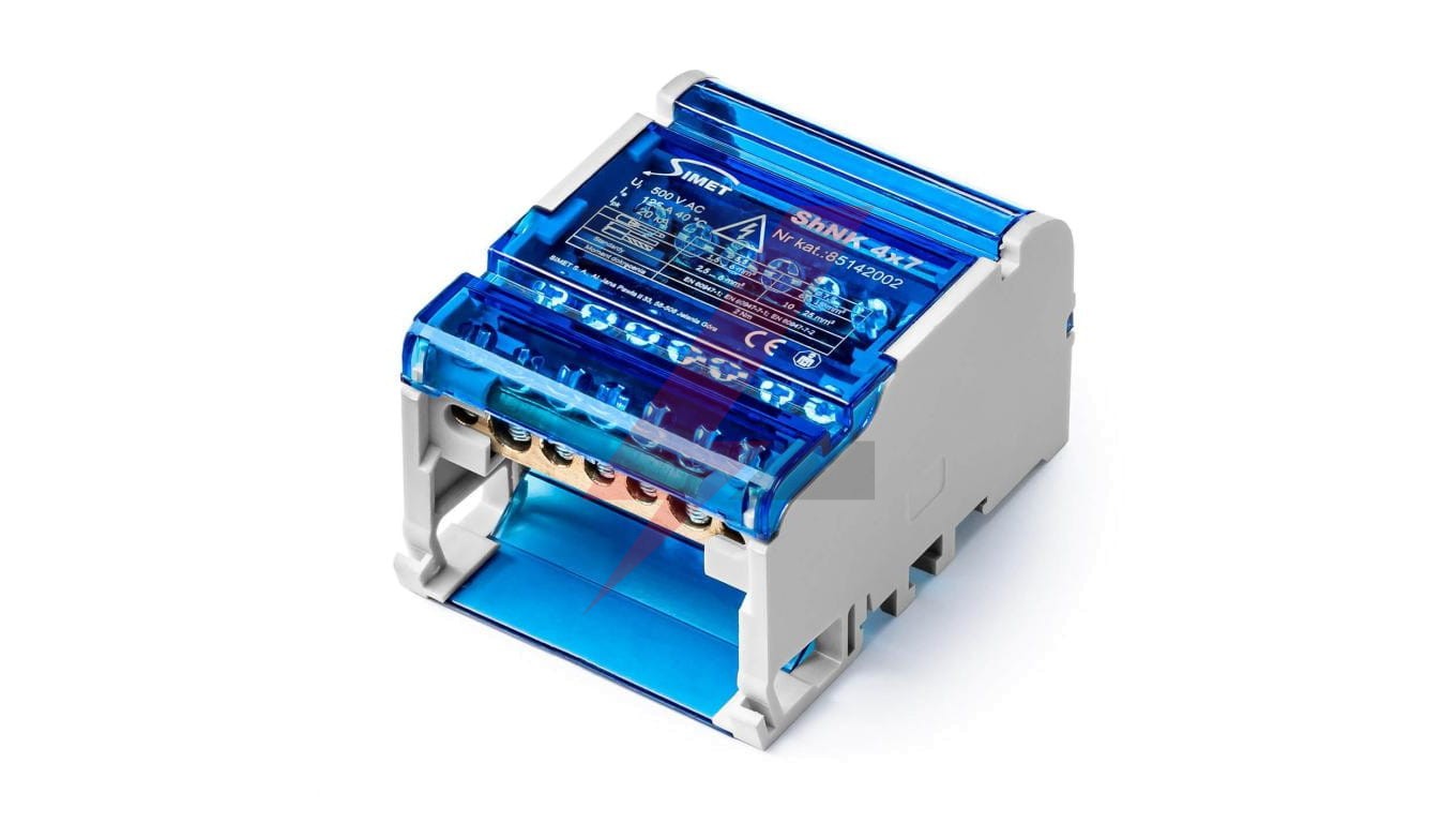 Czterobiegunowy modułowy blok rozdzielczy 4x(5x6mm2 2x25mm2 ) na szynę TS35 ShNK 4x7 85142002