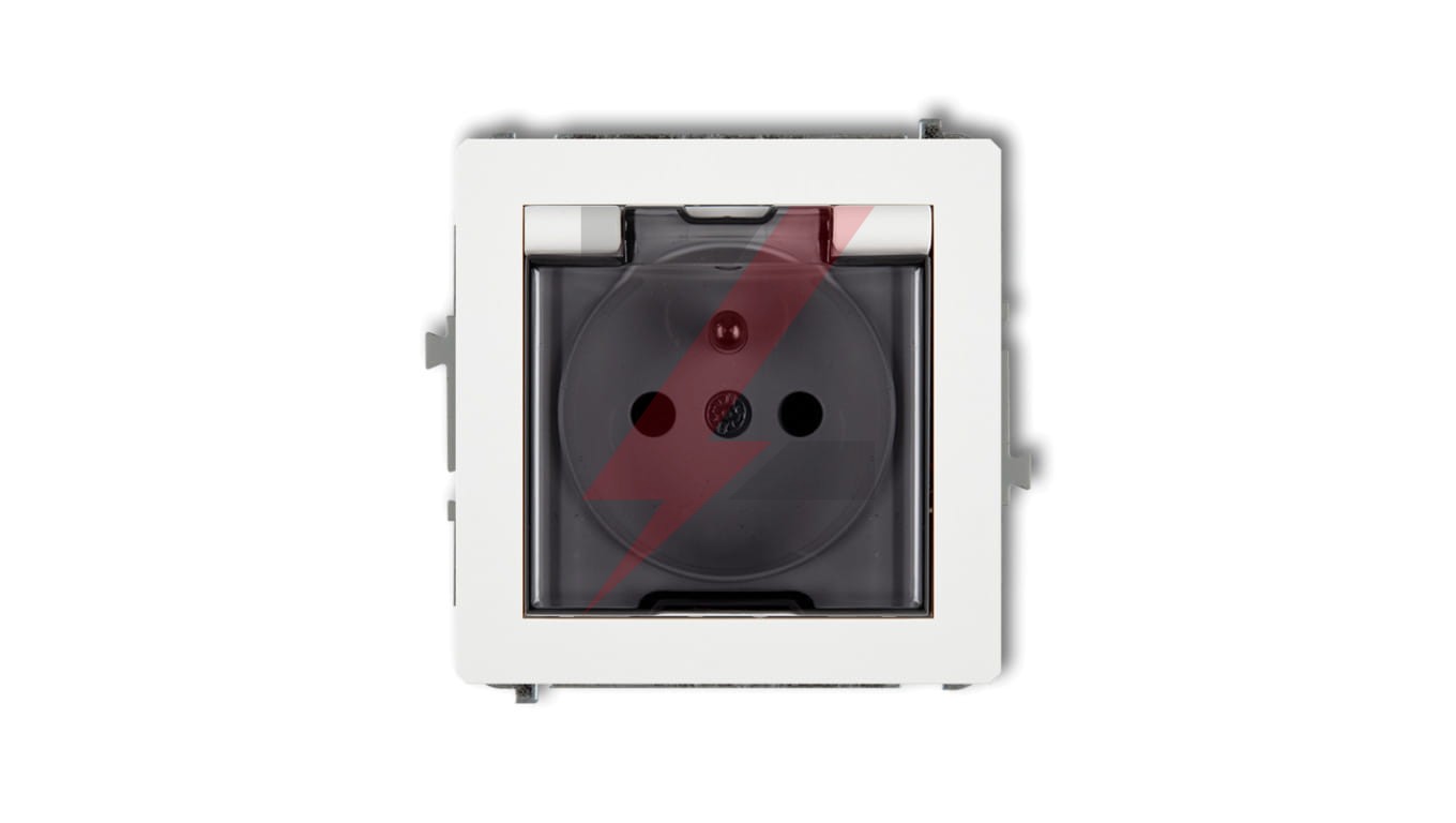 DECO Mechanizm gniazda bryzgoszczelnego z uziemieniem 2P+Z (klapka dymna, przesłony torów prądowych), biały mat 25DGPB-1zdp