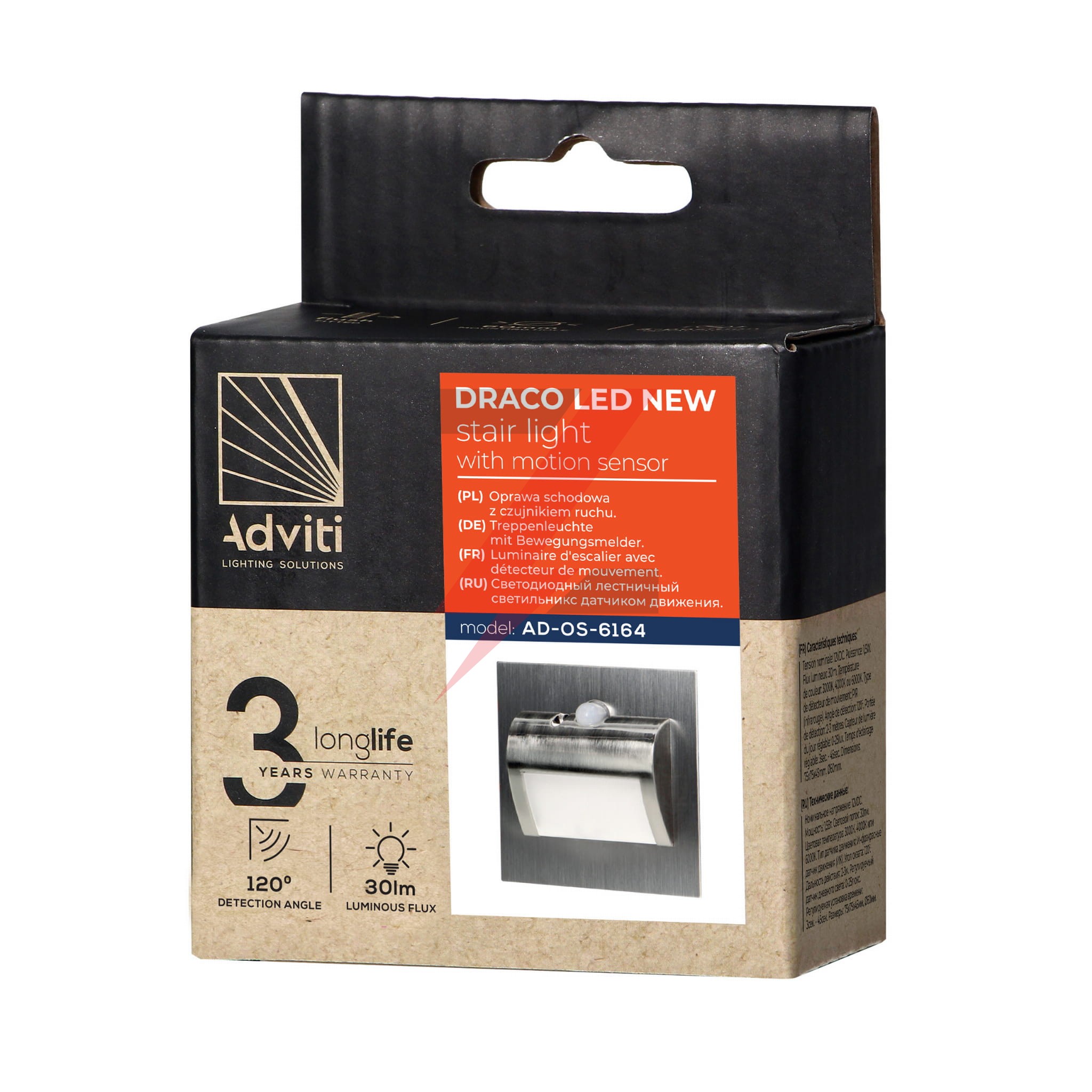 DRACO LED NEW 1,5W, oprawa schodowa podtynkowa, 12VDC, 30lm, 4000K, satyna, czujnik ruchu i zmierzchu AD-OS-6164LR4/N