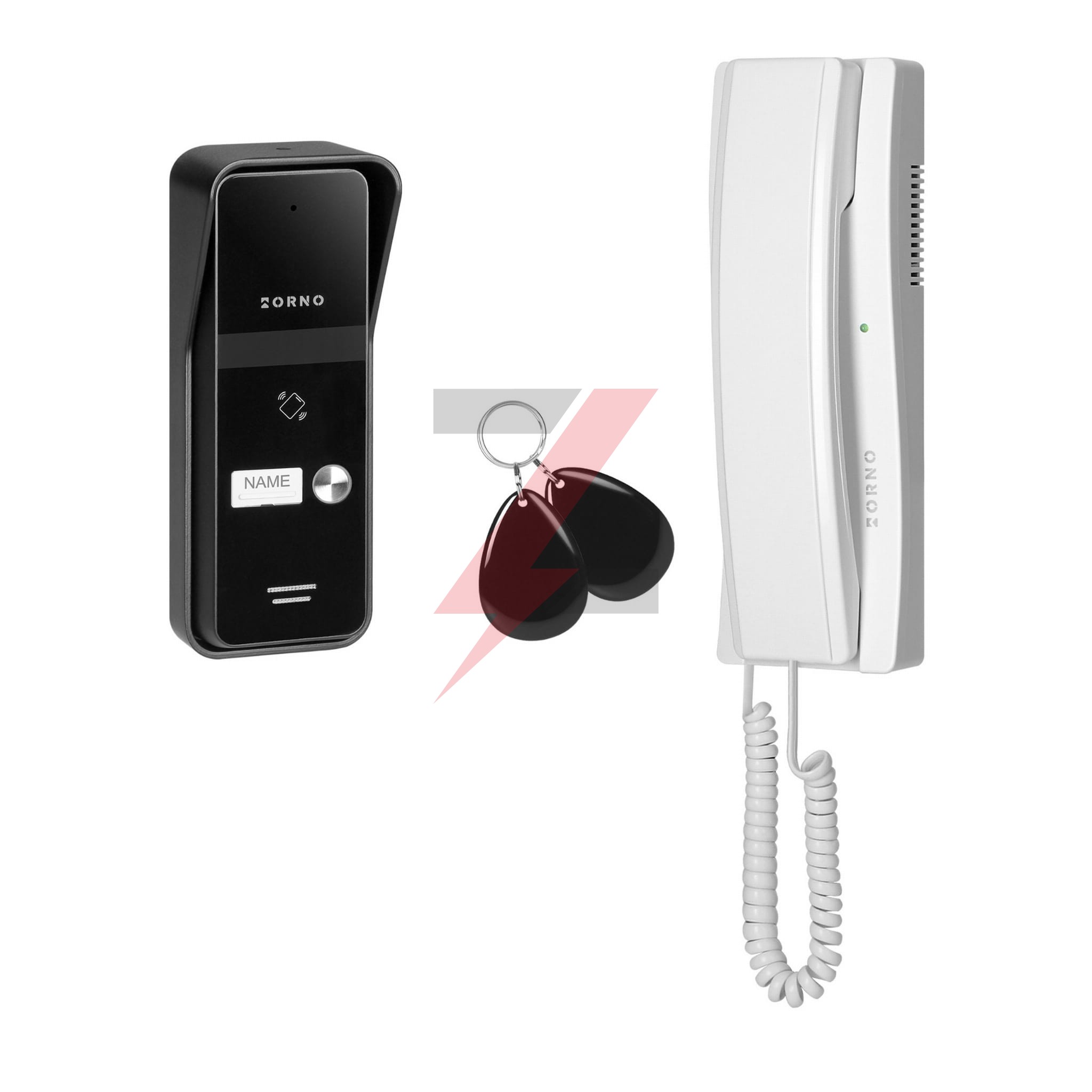 ENIR, zestaw domofonowy jednorodzinny, 2-żyłowy, z czytnikiem breloków, biały,OR-DOM-BA-935/W