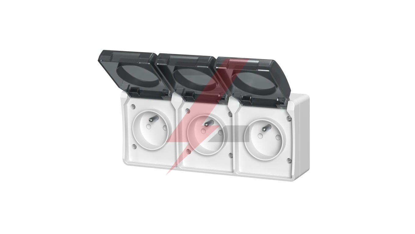 Gniazdo potrójne z uziemieniem natynkowe z klapką dymną Aqua Plus IP44 białe / 40228