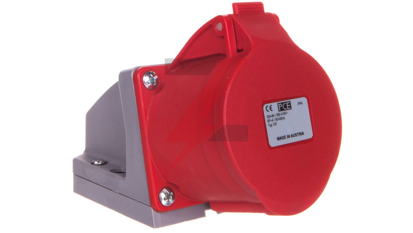 Gniazdo stałe 32A 7P 400V czerwone IP44 127-6V