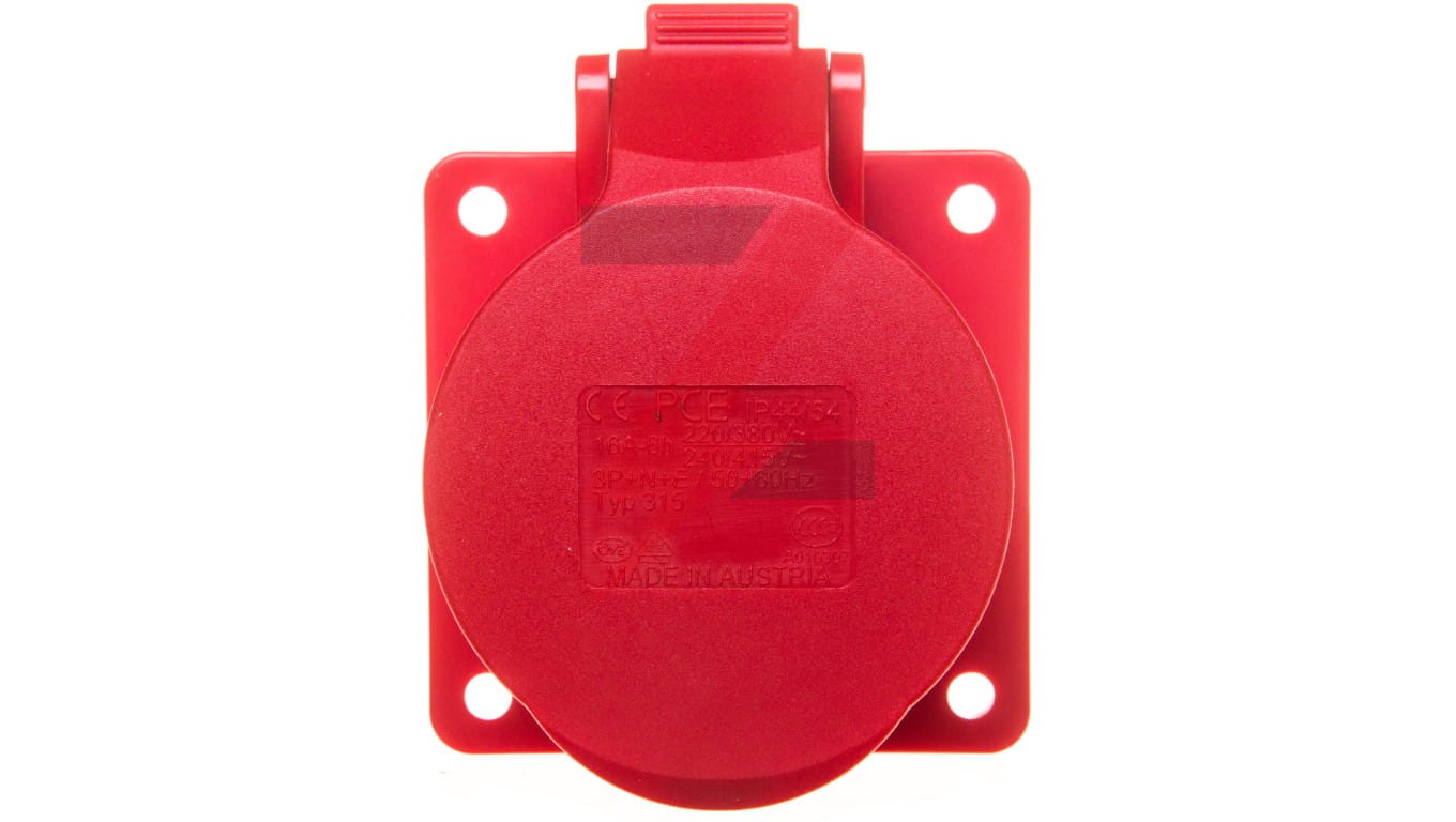 Gniazdo tablicowe 16A 5P 400V /75x75/ czerwone IP44 TWIST 315-6f7