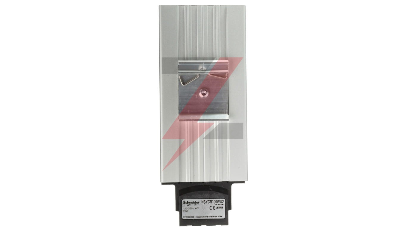Grzałka rezystancyjna 90 W, 110 250 V AC 50/60 Hz dla systemu zarządzania termicznego ClimaSys CR. Produkt ma wytłaczany korpus aluminiowy. Mocowanie za pomocą zacisków w pozycji pionowej. Szerokość produktu wynosi 85 mm, wysokość 200 mm, a głębokość 65 mm. Grzejniki muszą być zainstalowane ze sterownikiem termicznym w celu kontrolowania temperatury lub wilgotności wewnątrz obudowy. Obudowa musi być szczelnie zamknięta, aby zapobiec dostaniu się powietrza z zewnątrz. Zabezpieczenie elektryczne musi być zainstalowane po stronie zasilania urządzenia. Stopień ochrony IP20. Temperatura powietrza otoczenia podczas pracy -40-70 °C. Zgodność z certyfikatami UL i VDE. Produkt posiada ekologiczny znak Green Premium, ograniczenie wykorzystania substancji niebezpiecznych.