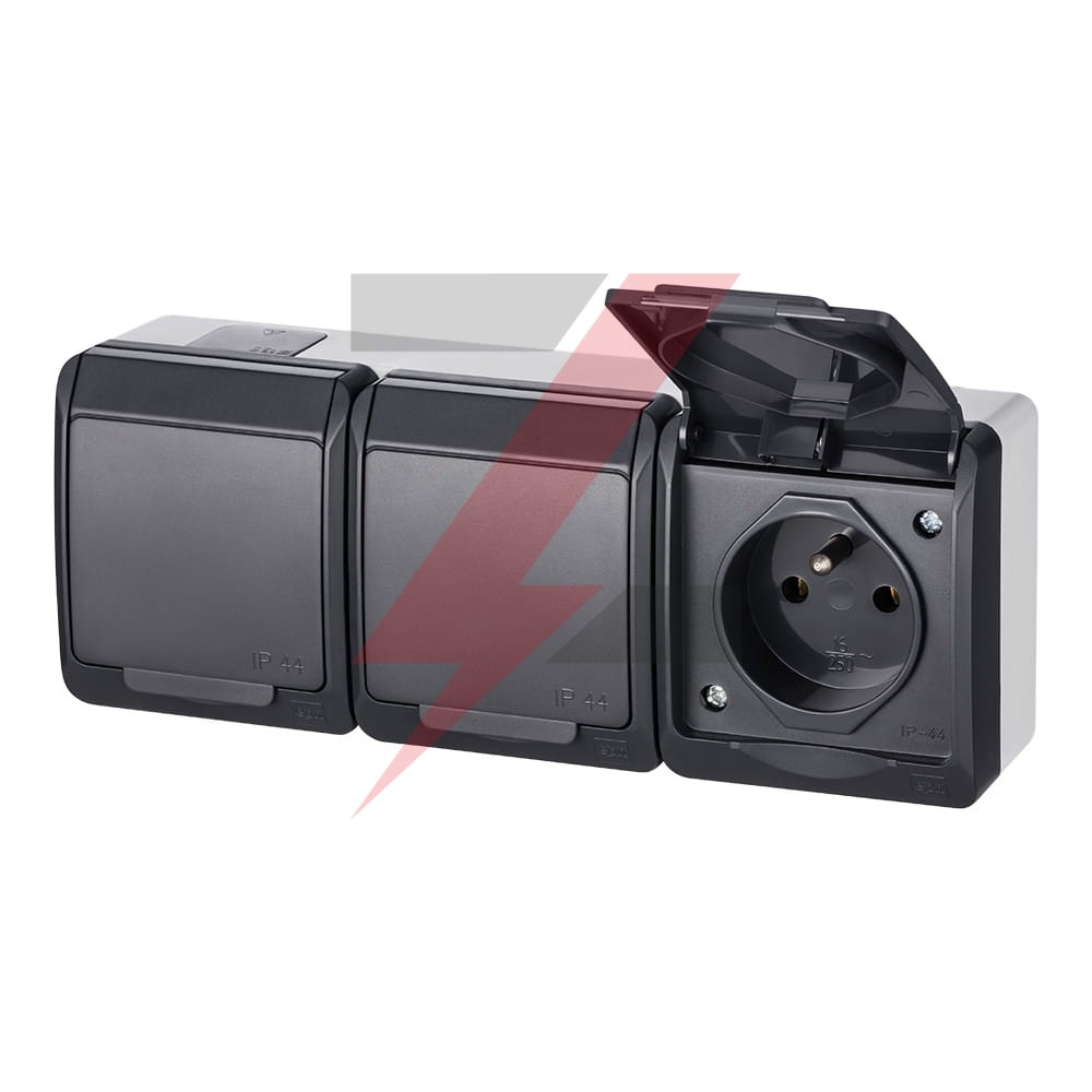 Hermes Gniazdo hermetyczne potrójne z/u 16A IP44 antracyt GNT 0323-07
