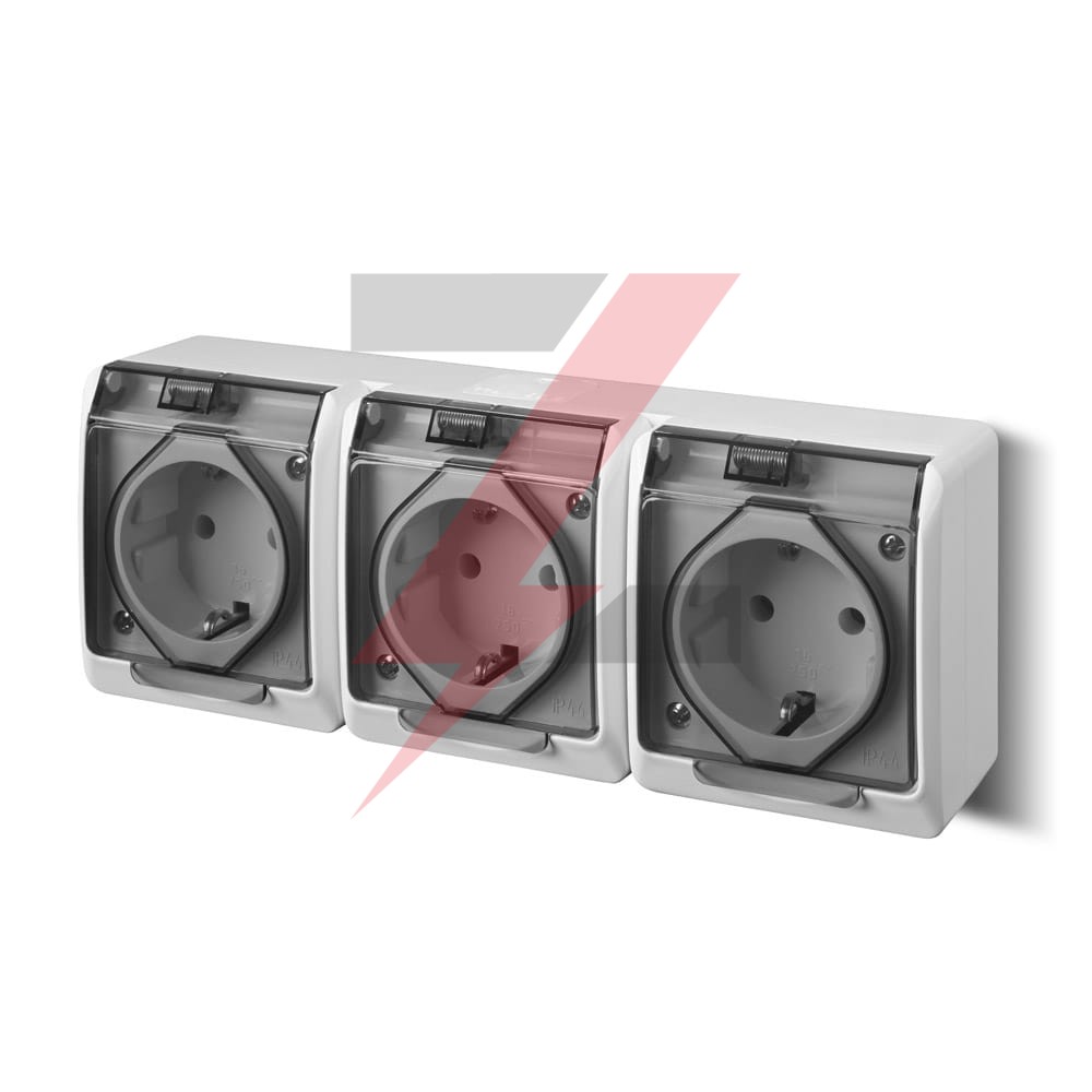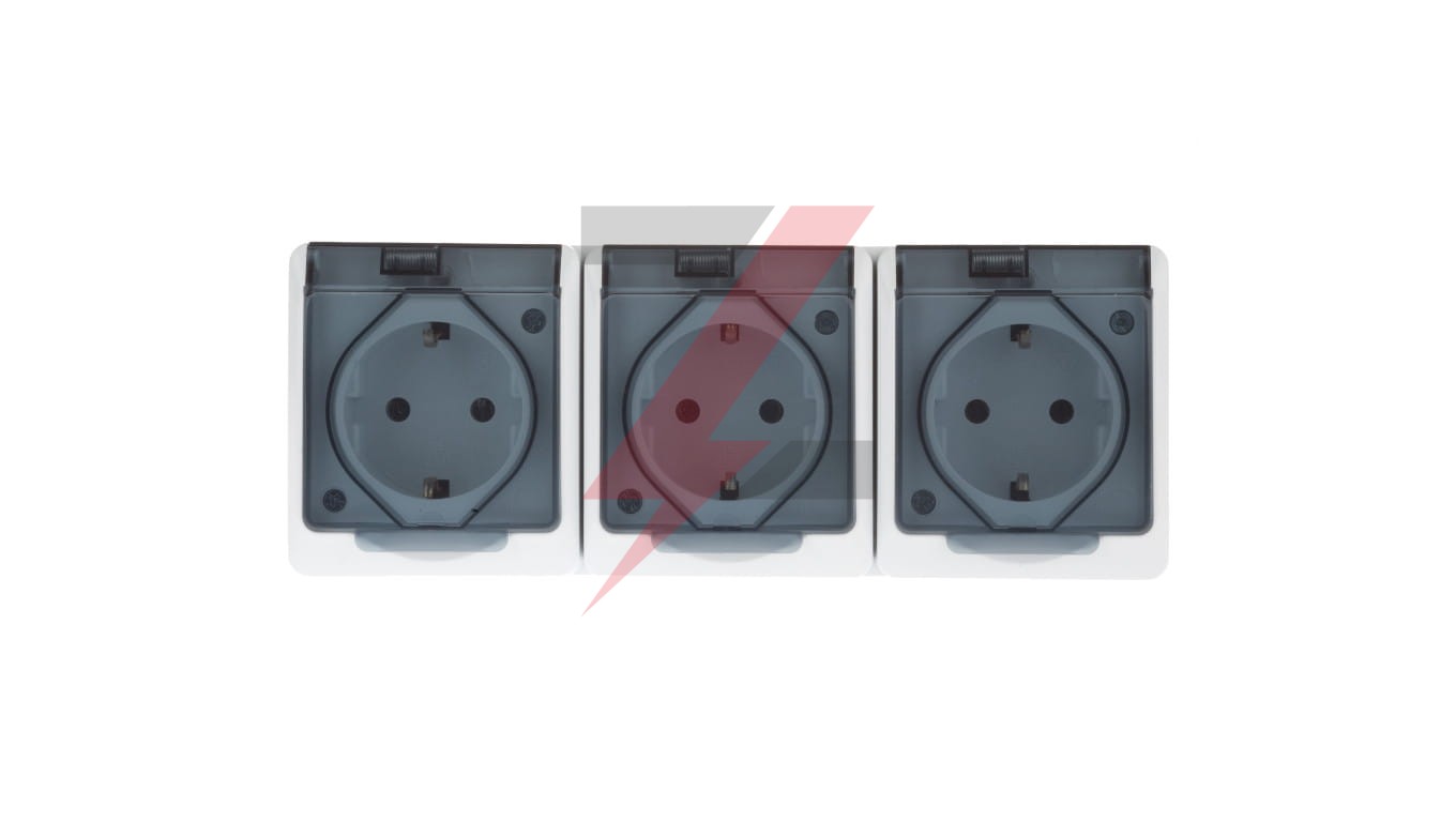 Hermes Gniazdo hermetyczne potrójne z/u Schuko z klapką dymną 16A IP44 białe 0326-01