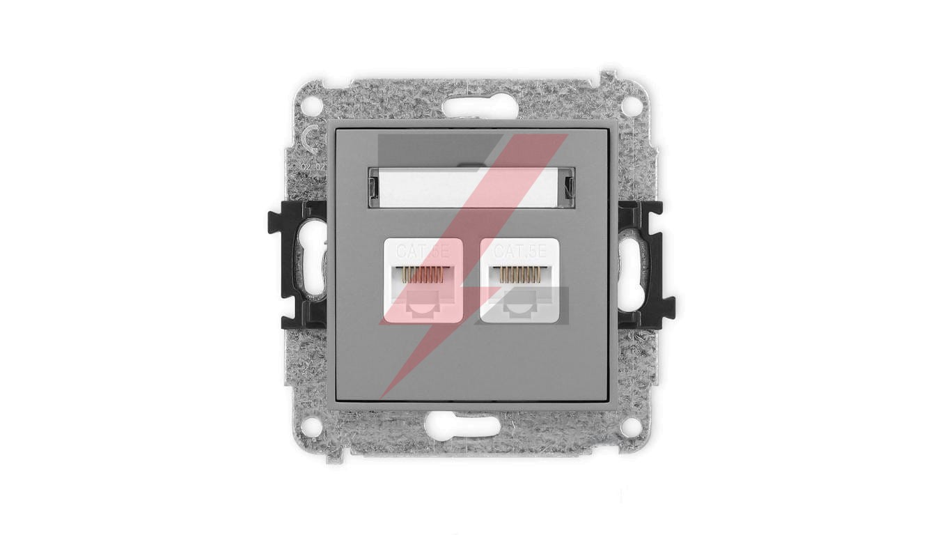 ICON Mechanizm gniazda komputerowego podwójnego 2xRJ45, kat. 5e, 8-stykowy szary mat 27IGK-2