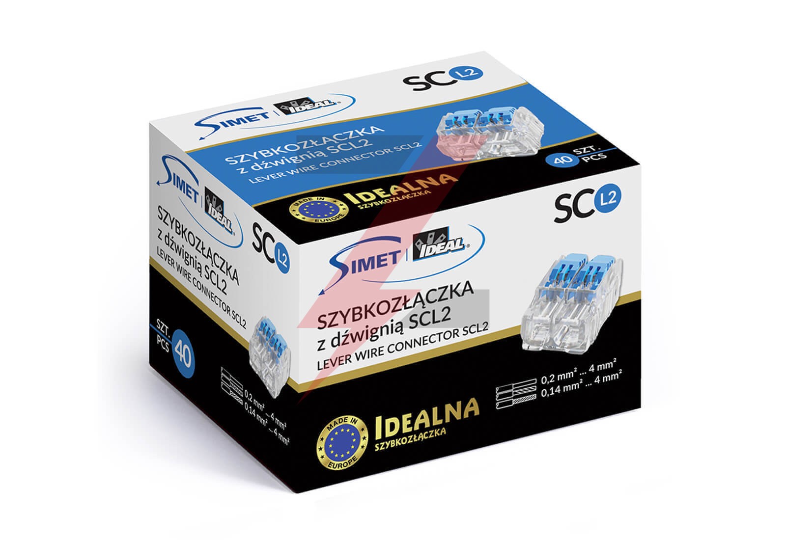 IDEALNA Szybkozłączka SCL2 z dźwignią do linek i drutów 2-torowa 4mm² 32A 450V 88000303S /40szt./