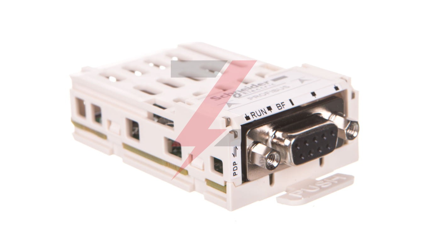 Ten moduł komunikacyjny PROFIBUS DP V1 jest opcją dla napędów o zmiennej prędkości serii Altivar Jest on wyposażony w 1 x 9-drożne żeńskie złącze SUB-D. Jest kompatybilny z napędami Altivar Machine i Altivar Process. Umożliwia integrację napędu o zmiennej prędkości w sieci sterowania procesem. Waży 140g