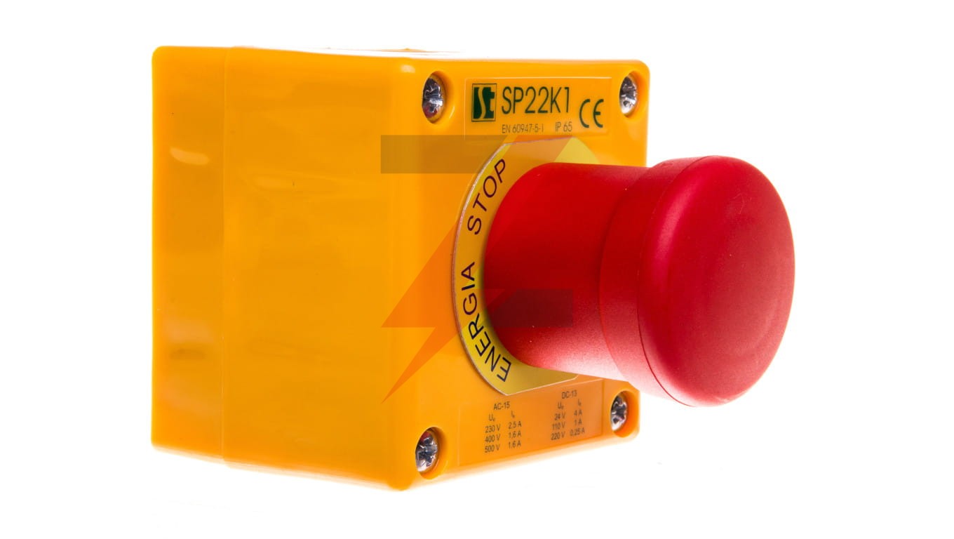 Kaseta z przyciskiem bezpieczeństwa IP65 żółta 1x dławnica SP22K1BN-1
