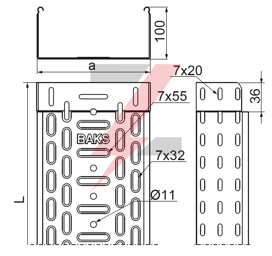 Korytko kablowe perforowane 100x100 grubość 0,7mm KGL100H100/3 110116 /3m/