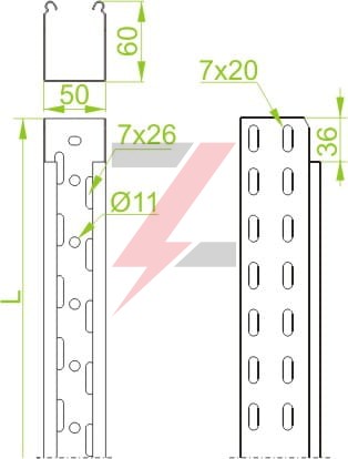 Korytko kablowe perforowane 100x60 grubość 0,7mm KGL/KGOL100H60/3 160116 /3m/