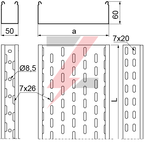 Korytko kablowe perforowane 200x60 grubość 1,5mm KCP/KCOP200H60/3 161420 /3m/