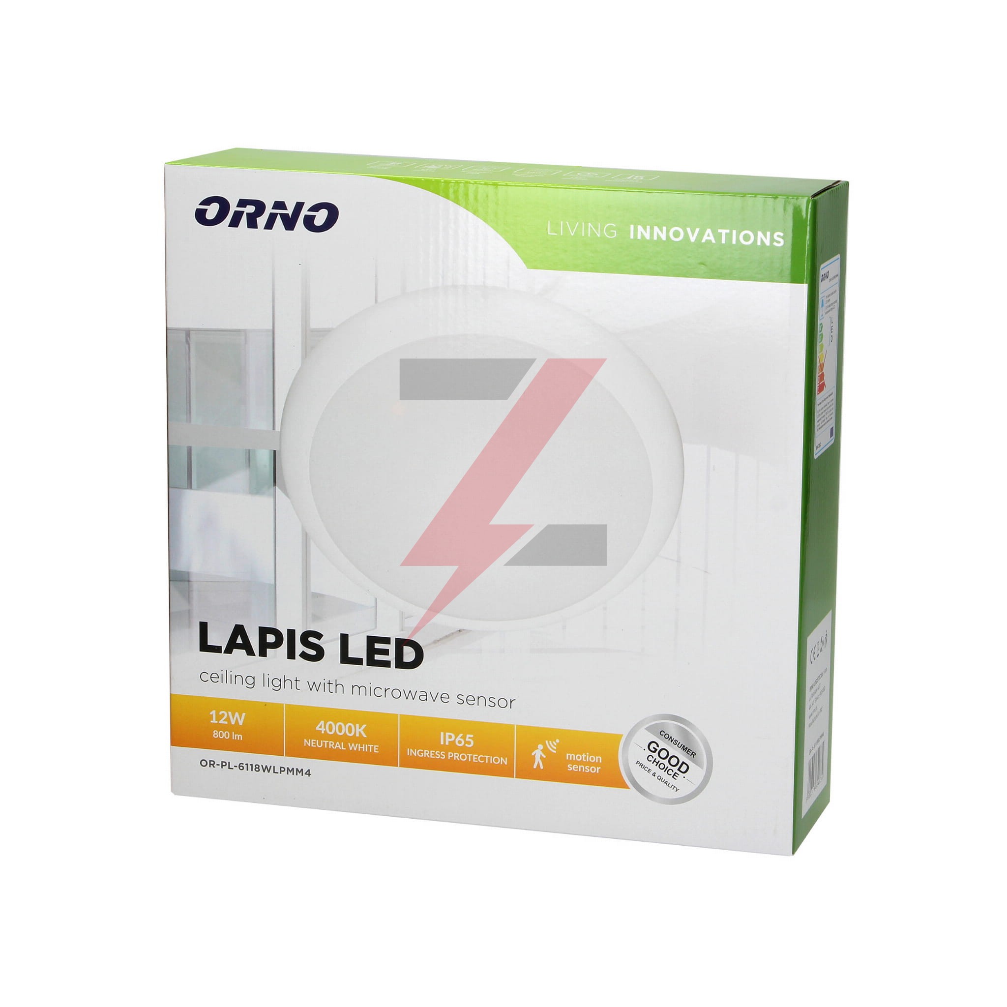 LAPIS LED 12W, plafon oświetleniowy z mikrofalowym czujnikiem ruchu, 800lm, IP65, 4000K, IK10, poliwęglan mlecz,AD-PL-6118WLPMM4