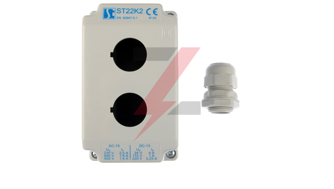 Obudowa kasety 2-otworowa 22mm szara IP65 ST22K200