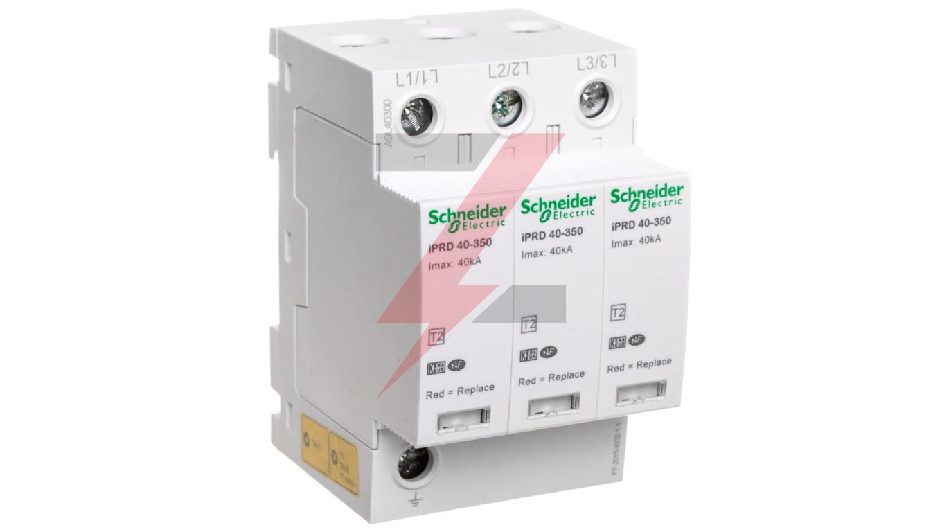Ogranicznik przepięć Acti9 iPRD40 chroni instalacje 3P. Umożliwia szybką wymianę uszkodzonych wkładówTo urządzenie typu 2 jest zalecane do pracy w pomieszczeniach o wysokim poziomie ryzyka i na panelu wejściowymMożna go odwrócić, aby przewody fazowe/neutralne/uziemiające mogły być wprowadzane od góry lub od dołuSkojarzony wyłącznik automatyczny Isc może pracować z mocą do 50 kATen Acti9 iPRD40 jest kompatybilny z uziemieniem TT i TN-S. Maksymalne ciągłe napięcie robocze Uc w trybie wspólnym (między fazą a uziemieniem) jest 350VAC. Maksymalny poziom zabezpieczenia napięciowego w trybie wspólnym (między fazą a uziemieniem) wynosi 1,4 kV. Znamionowe napięcie robocze wynosi 230VAC +/- 10%Kolor produktu jest biały (RAL9003). Wymiary to (Sz) 54 mm x (Wys) 85 mm x (Gł) 69 mm. Waga wynosi 317gStopień ochrony wynosi IP20 i IP40 w obudowie modułowejTemperatura robocza wynosi od -25°C do 60°C. Temperatura przechowywania wynosi od -40°C do 85°CTen produkt jest zgodny z normami EN 61643-11 i IEC 61643-11.