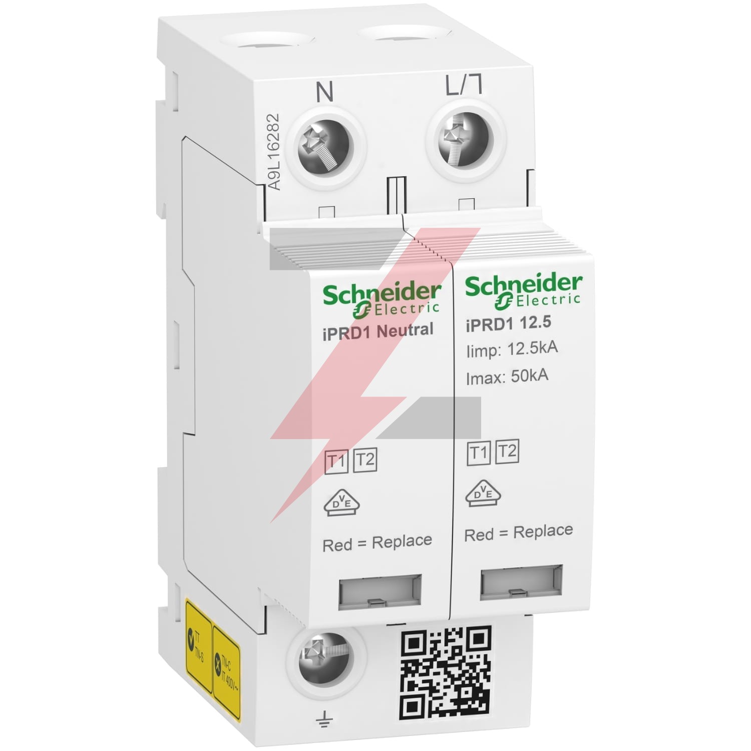 Ogranicznik przepięć Acti9 iPRD1 12,5r chroni instalacje 1P+N w budynkach mieszkalnych i małych obiektach komercyjnych przed bezpośrednim i pośrednim przepięciem przejściowymTo urządzenie typu 1+2, które jest automatycznie chronione przez wbudowany wyłącznik automatyczny, jest zalecane do wysokiego poziomu ryzyka w płycie rozdzielnicy wejściowejOferuje zdalne raportowanie komunikatu kaseta musi zostać zmienionaTen wstępnie okablowany ogranicznik przepięć umożliwia szybką wymianę uszkodzonych wkładek wyjmowanychZawiera odłącznik bezpieczeństwa wycofanego z eksploatacji. Ten Acti9 iPRD1 12.5r jest kompatybilny z systemami uziemienia TT i TN-S. Powiązana z Compact nsxm TM80D zdolność wyłączania wynosi 70 kAMaksymalny prąd rozładowania Imax wynosi 50 kA. Znamionowy prąd rozładowania wynosi 20 kAMaksymalne ciągłe napięcie robocze Uc w trybie różnicowym (między fazą a przewodem neutralnym) jest 350VACMaksymalne ciągłe napięcie robocze Uc w trybie wspólnym jest 255VAC między przewodem neutralnym a uziemieniem. Poziom zabezpieczenia napięciowego w górę wynosi 1,5 kV typu 1+2Znamionowe napięcie robocze dla użytkownika wynosi 230 VAC. Częstotliwość pracy wynosi 50 HzWymiary: (sz.) 36 mm x (wys.) 89 mm x (gł.) 69 mm. Szerokość w boisku 9 mm wynosi 4. Waga wynosi 290gStopień ochrony wynosi IP20 i IP40 w obudowie modułowejTemperatura robocza wynosi od -25°C do +60°C. Temperatura przechowywania wynosi od -40°C do +80°CTen produkt jest zgodny z normami EN 61643-11 2012 i IEC 61643-11 2011.