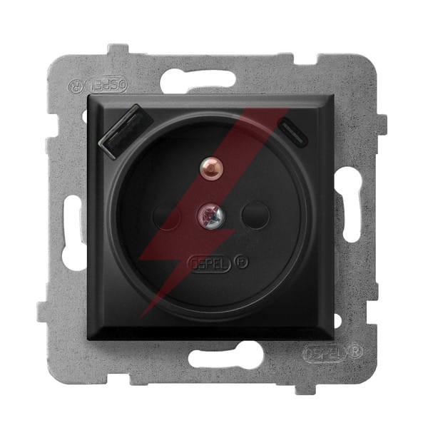 ARIA Gniazdo pojedyncze z uziemieniem z przesłonami torów prądowych, z ładowarką USB A+C czarny metalik GP-1UZPUSBAC/m/33