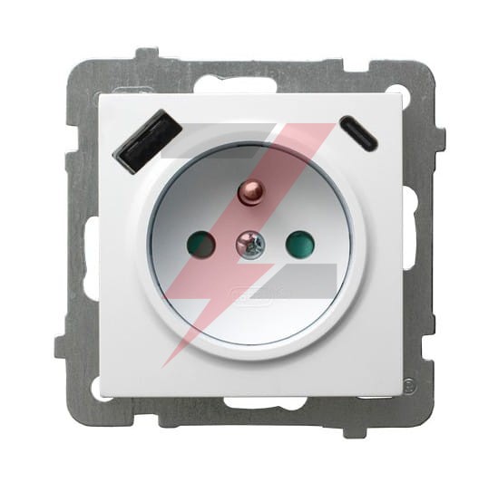 AS Gniazdo pojedyncze z uziemieniem z przesłonami torów prądowych, z ładowarką USB A+C biały GP-1GZPUSBAC/m/00