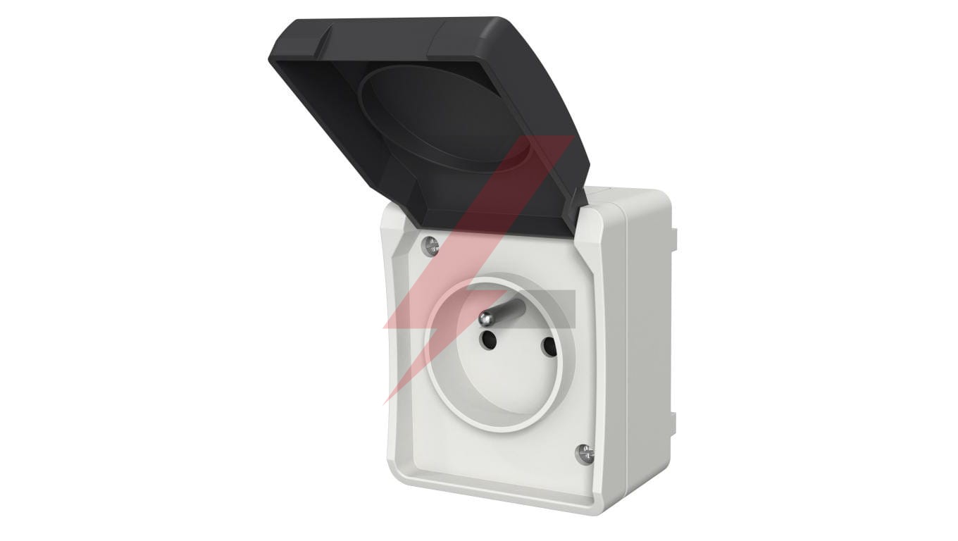 Gniazdo pojedyncze z uziemieniem natynkowe z klapką Aqua Plus IP54 szaro grafitowe 40114