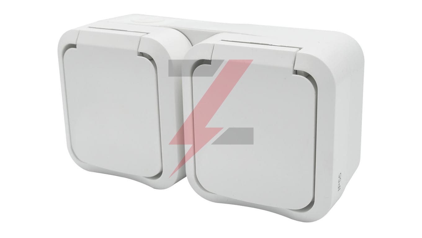Gniazdo z uziemieniem podwójne natynkowe Aqua Pro IP55 białe 60225