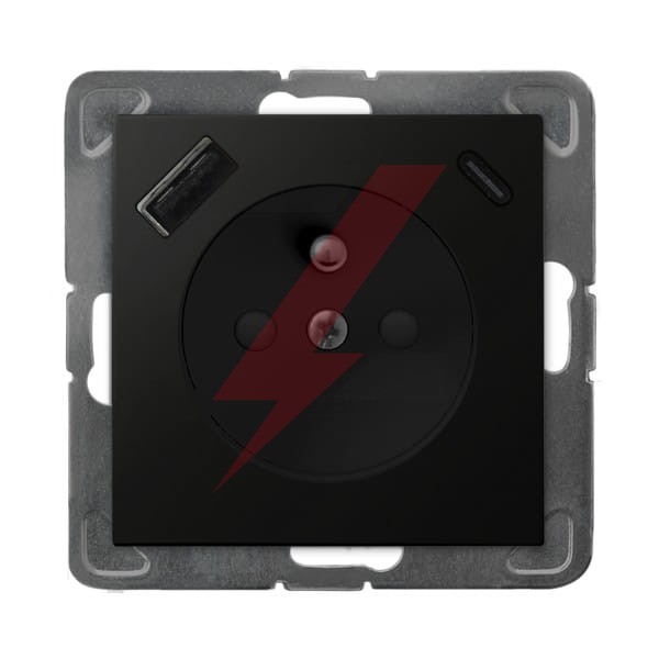 IMPRESJA Gniazdo pojedyncze z uziemieniem z przesłonami torów prądowych, z ładowarką USB A+C czarny metalik GP-1YZPUSBAC/m/33