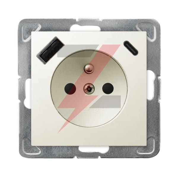 IMPRESJA Gniazdo pojedyncze z uziemieniem z przesłonami torów prądowych, z ładowarką USB A+C ecru GP-1YZPUSBAC/m/27