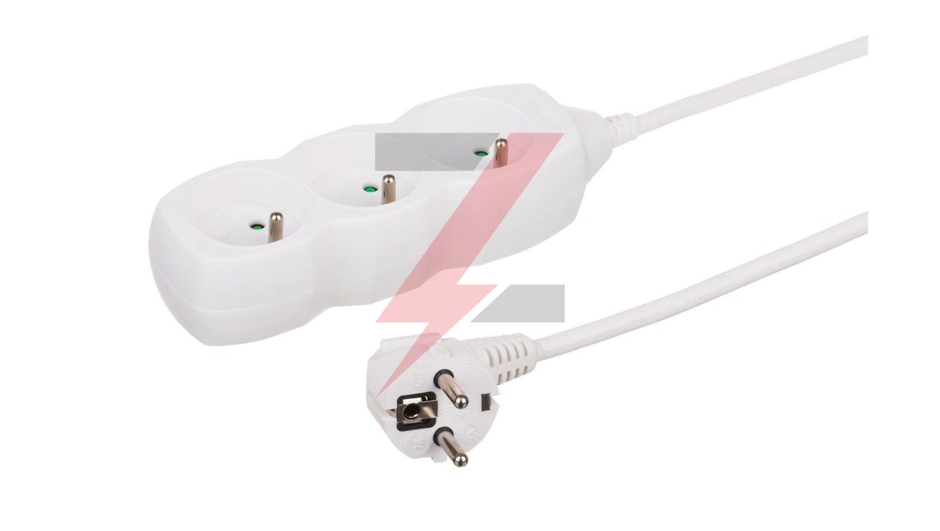 Przedłużacz 3-gniazdowy, 1,5m biały, 3x1,0mm OWY 34315