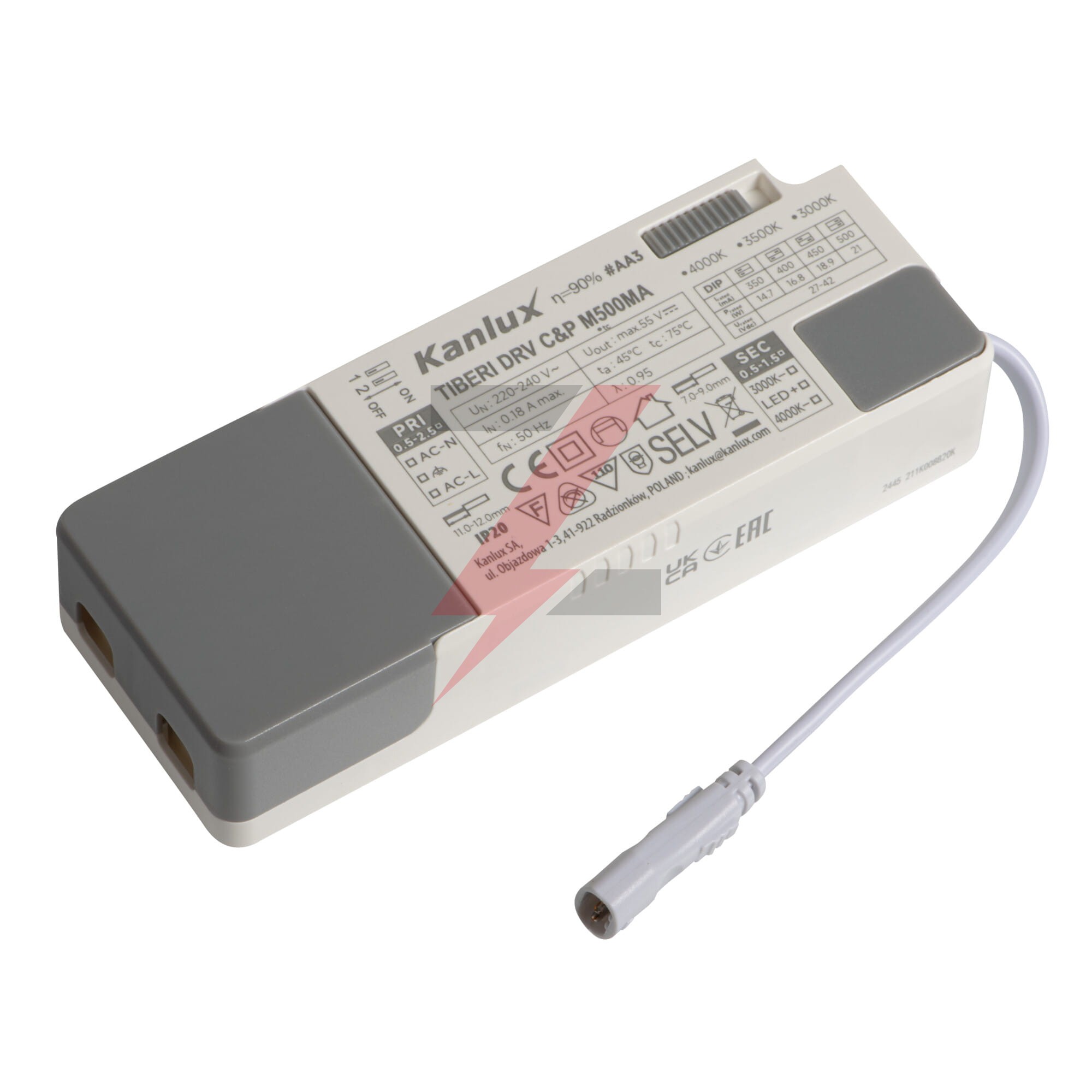 Zasilacz LED stałonapięciowy TIBERI DRV CiP M500MA 21W 27-42V DC 350-500mA IP20 5 lat Gwarancji 26384