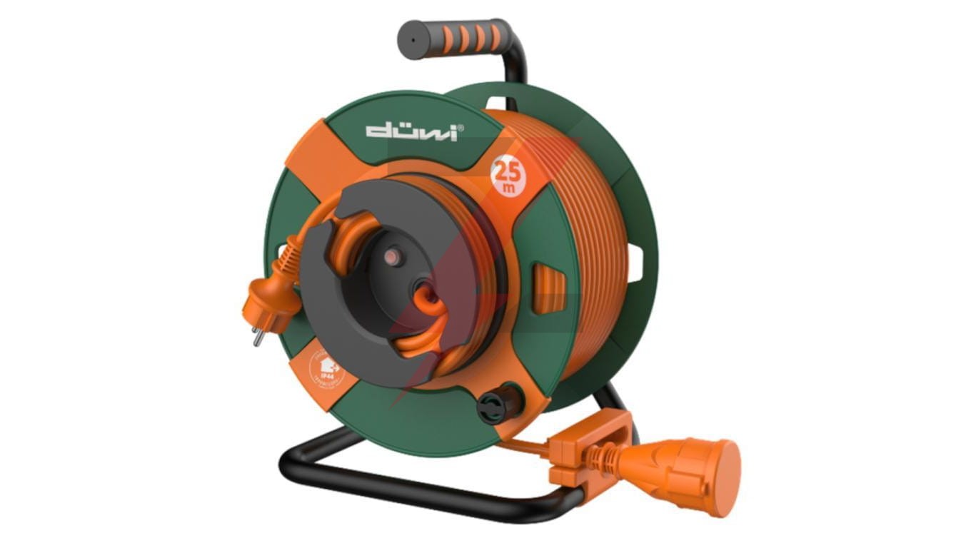 Przedłużacz bębnowy 1-gniazdowy H05VV-F2x1,0 22+3m nawinięty na bęben zielono-pomarańczowy / 24629