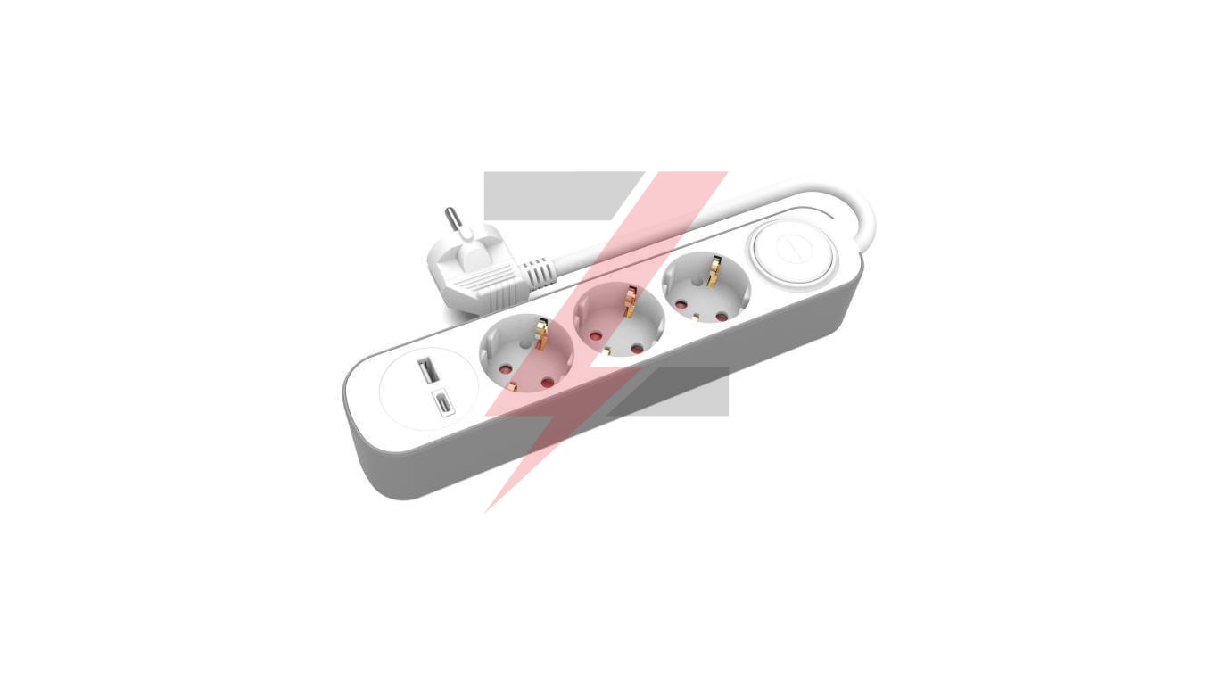 Przedłużacz stały 3x z włącznikiem oraz gniazdami USB A USB C 1,5m schuko PS-370SWS+USBA+USBC/1,5 E W-30006