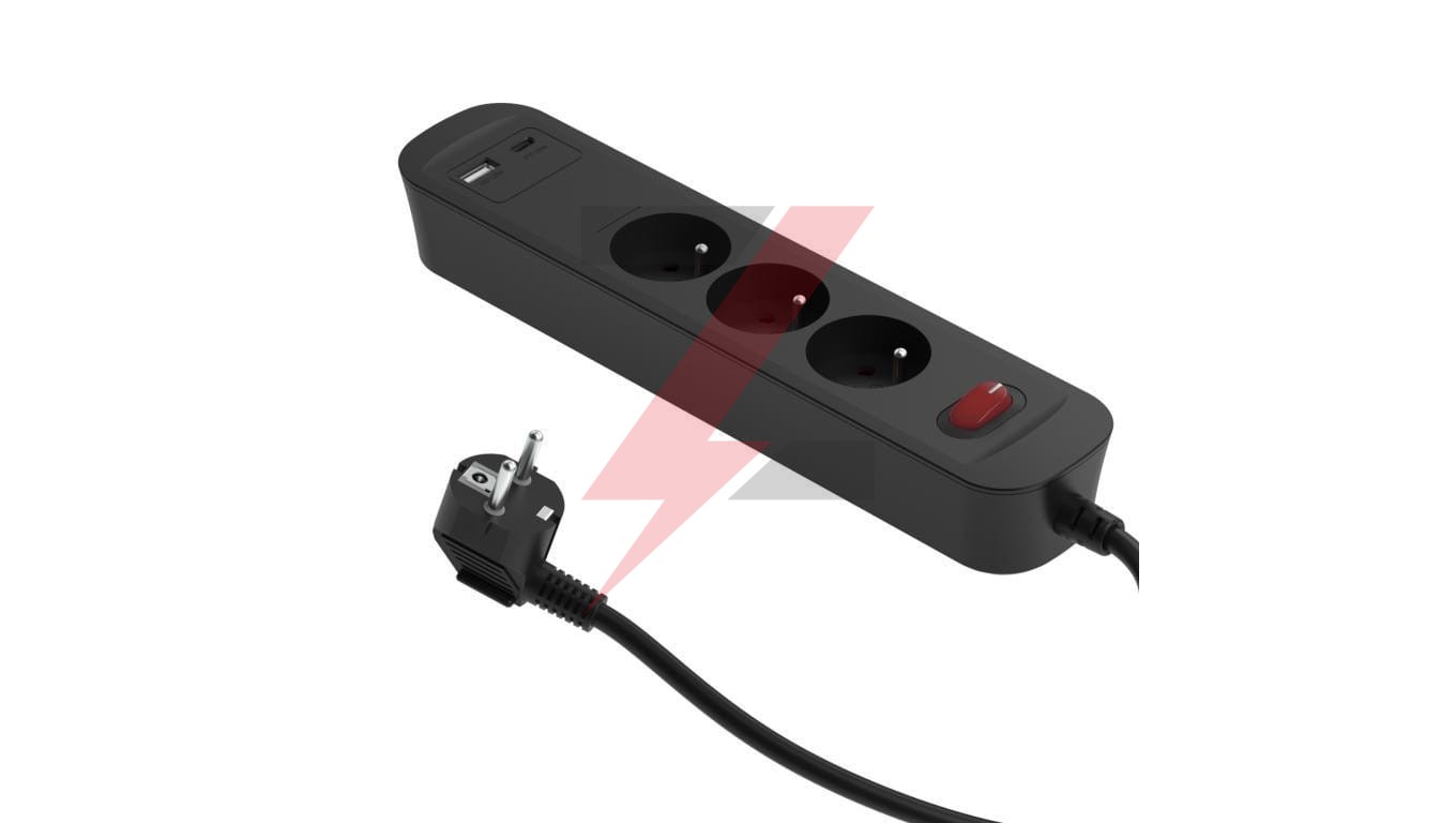 Przedłużacz szybkoładujący PD20 3-gniazdowy z wyłącznikiem + 2x USB (A+C) 1,4m SQUALL, grafitowy / 34098