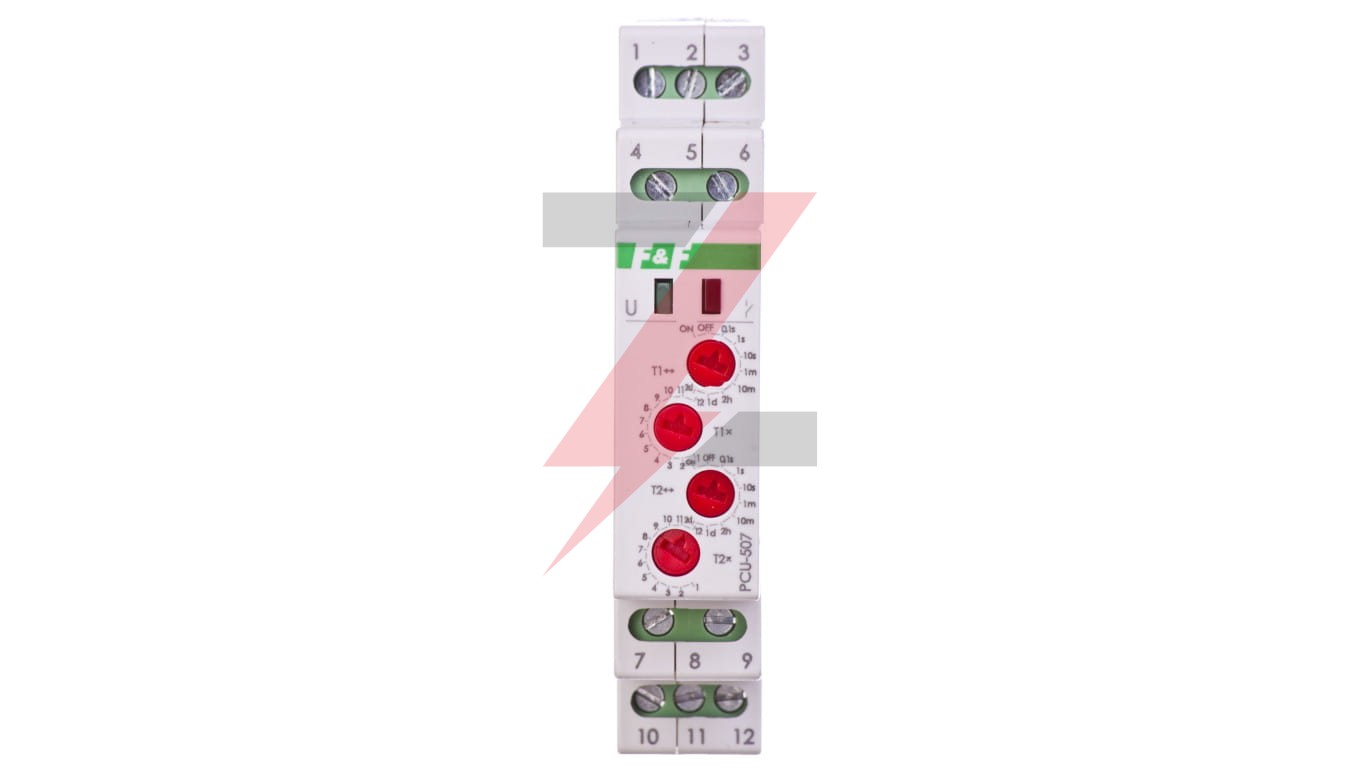 Przekaźnik czasowy 2P 8A 0,1sek-576h (praca/przerwa) 24V AC/DC 2-funkcyjny PCU-507-24V