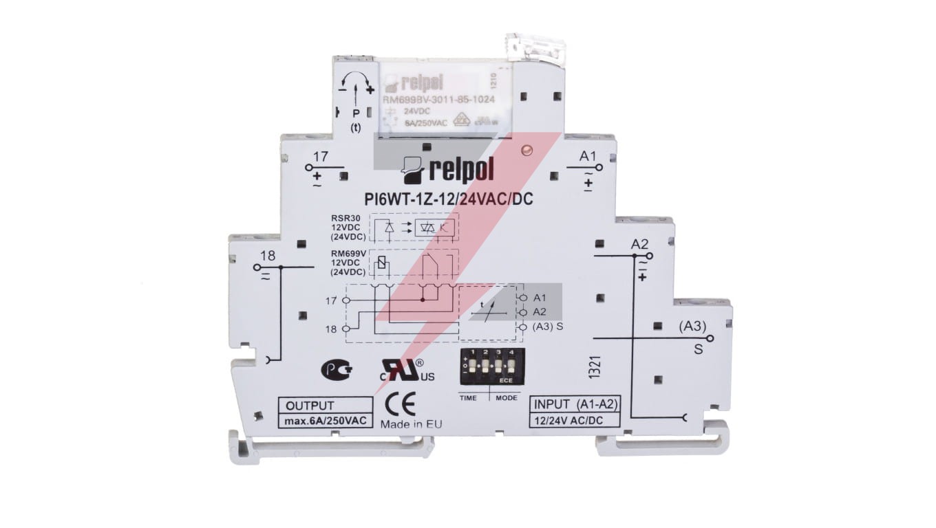 Przekaźnik czasowy wąskoprofilowy wielofunkcyjny 1Z 6A 1sek-10dni 24V AC/DC PIR6WT-1Z-24VAC/DC-R 857666