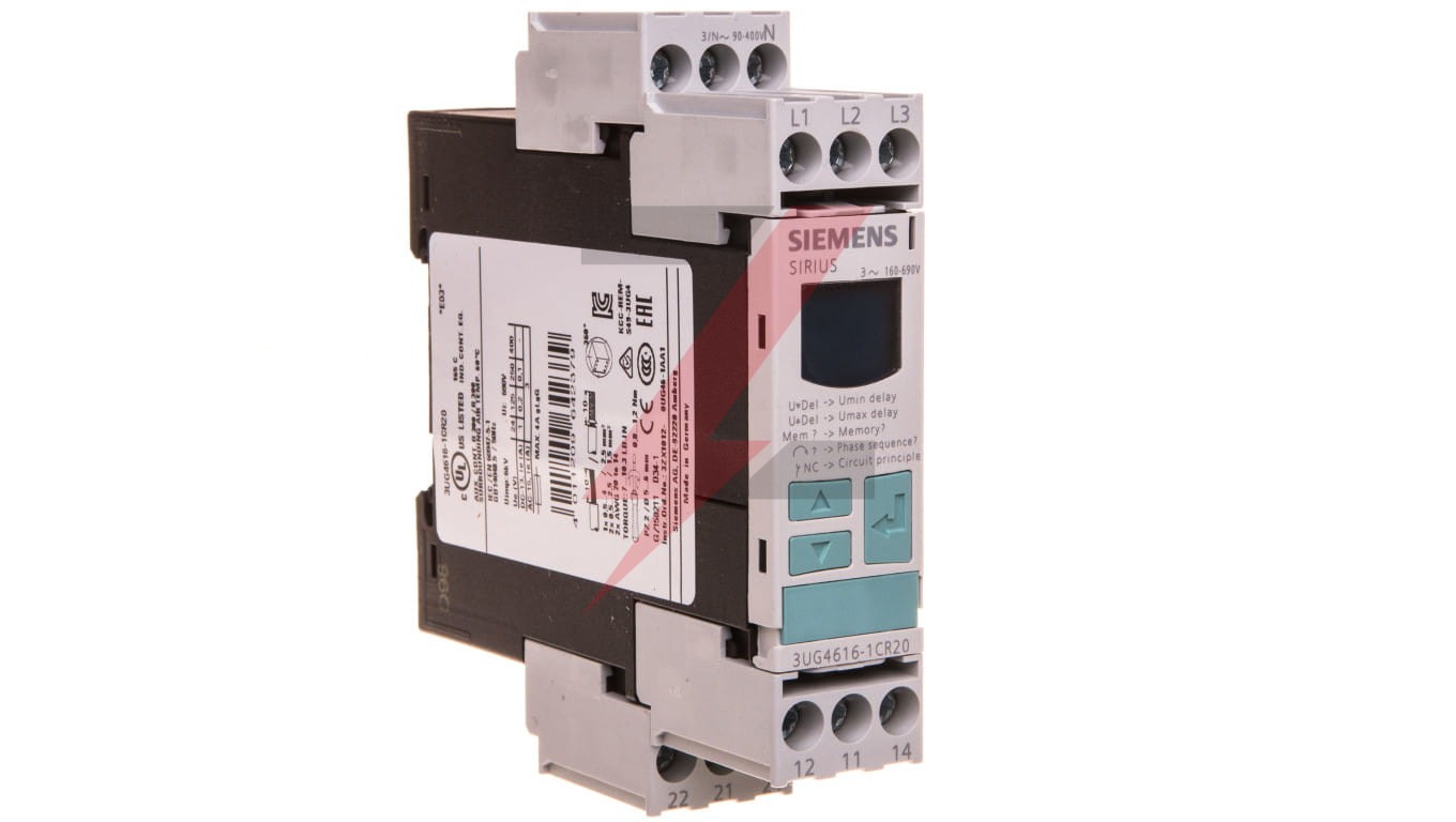 Przekaźnik kolejności, zaniku i asymetrii faz, kontrola nad-/podnapięciowa 2P 0,1-20s 160-690V AC z LCD 3UG4616-1CR20