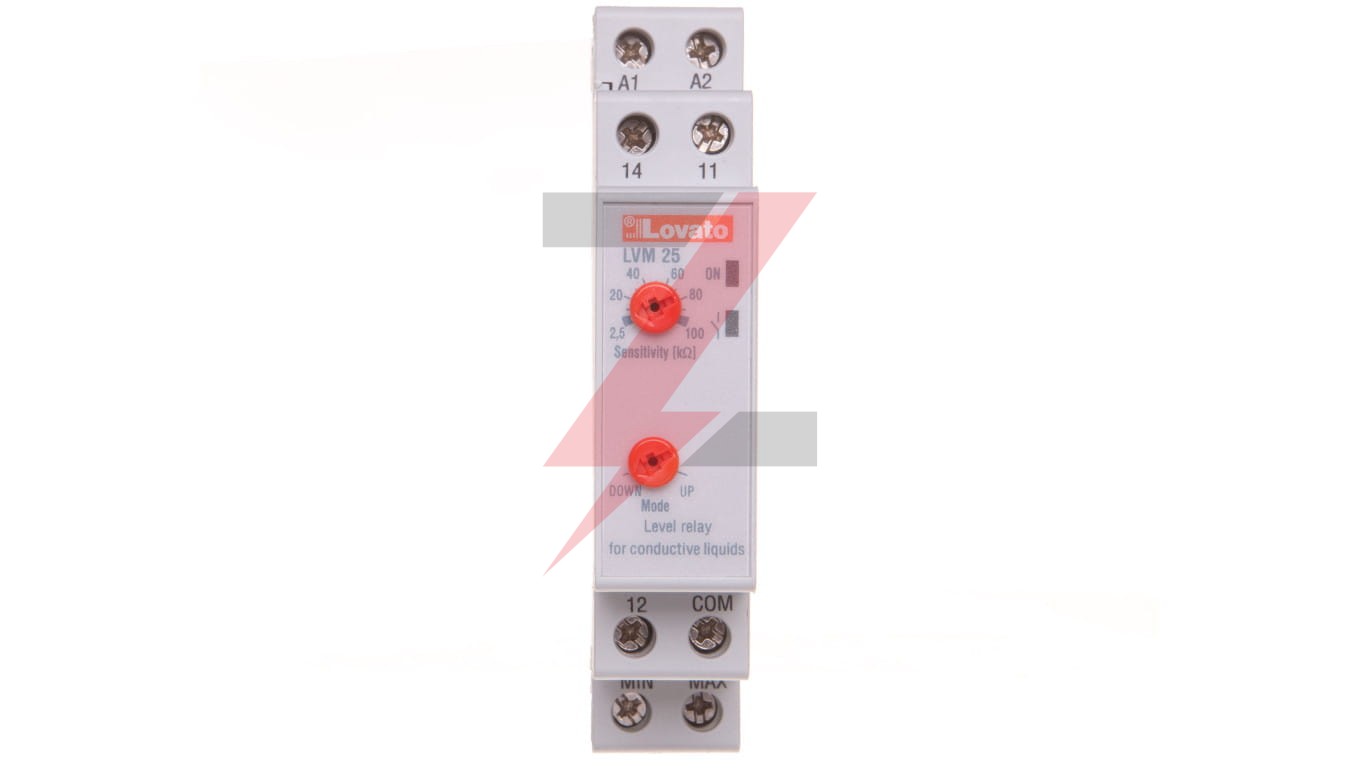Przekaźnik kontroli poziomu cieczy, funkcje opróżniania lub napełniania, regulacja czułości, zasilanie 24...240VAC/DC LVM25240