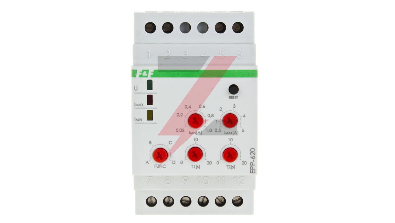 Przekaźnik kontroli prądu 4-funkcyjny 0,02-1/0,5-5A 2P 0-20sek (praca z przekładnikiem 5A) EPP-620