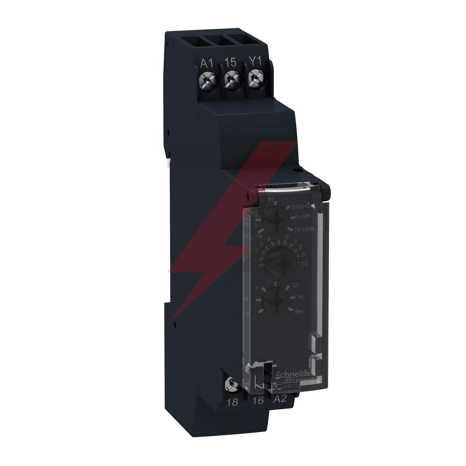Ten przekaźnik czasowy Harmony RE17R może być ustawiony w zakresie od 0 sekundy do 100 godzin, ma wartość wyjściową 8A, ma szerokość 17,5 mm i może być zasilany napięciem 24V DC, 24V do 240V AC. Posiada również 1 styk przełączny SPDT (jednobiegunowy dwuprzerwowy). Posiada jeden z najcieńszych na rynku współczynników kształtu, co pozwala na elastyczną i łatwą instalację na szynie DIN, wykorzystując tę samą przestrzeń, co każde modułowe urządzenie 1-biegunowe DIN. Oferuje również szczelną pokrywę, proste i precyzyjne ustawienia za pomocą trymerów obrotowych. Wielofunkcyjny timer do prostej integracji z przewodowymi schematami logicznymi, idealny do renowacji starych instalacji bez użycia PLC.