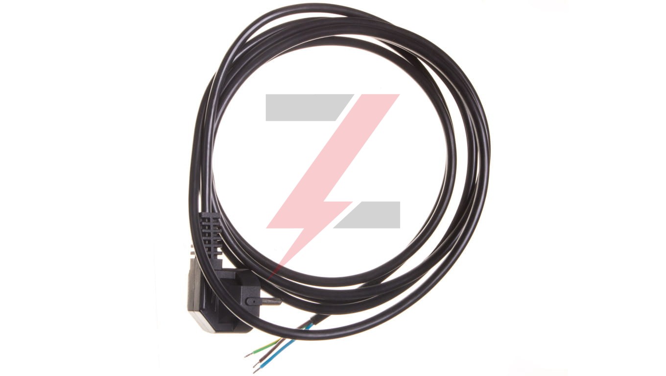 Przewód przyłączeniowy W-2 3x1,0 mm2 czarny z wtyczką kątową 3m 51.927