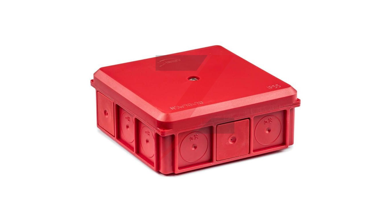 Puszka naścienna 90x37x90mm IP55 z dławnicami z wkrętem czerwona NSW90x90 35418701