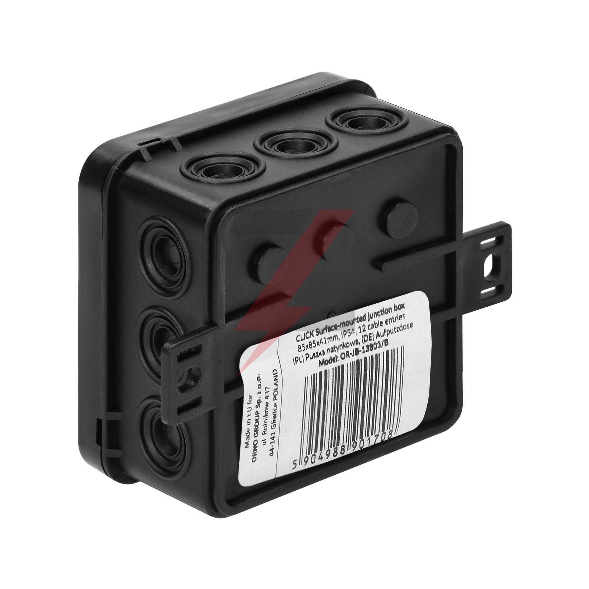 Puszka n/t CLICK, IP54, 12 przepustów, 85x85x41mm, czarna,OR-JB-13803/B