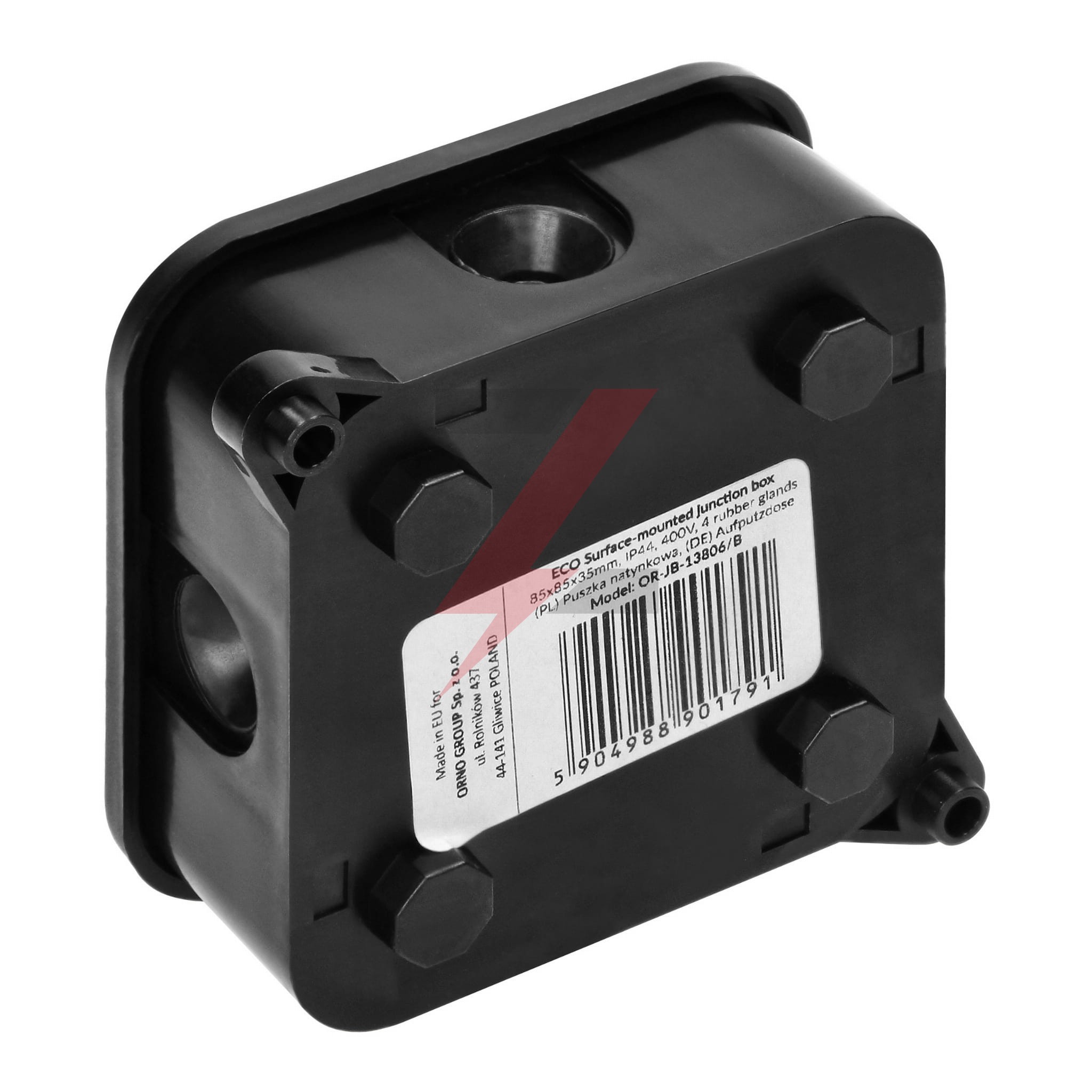 Puszka n/t ECO, IP44, 400V, 4 dławnice gumowe, 85x85x35mm, czarna,OR-JB-13806/B