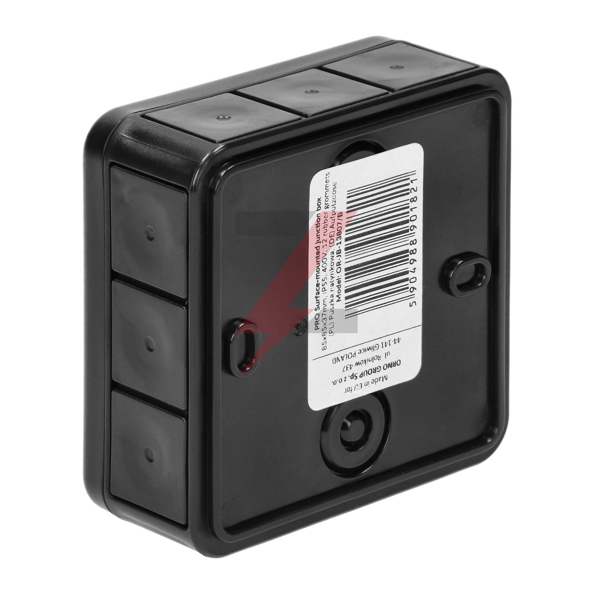 Puszka n/t PRO, IP55, 400V, 12 przepustów, 85x85x37mm, czarna,OR-JB-13807/B