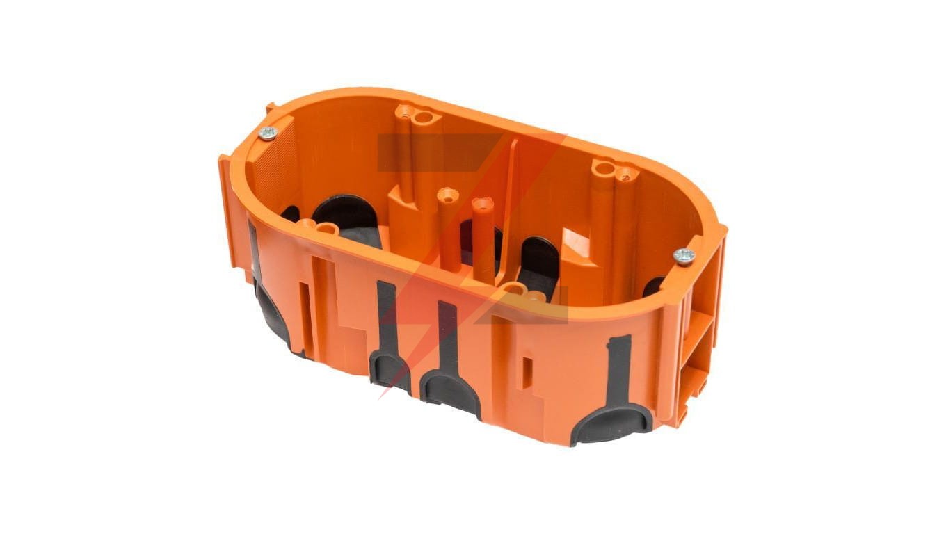 Puszka podtynkowa ProDuo podwójna, głęboka 60mm, fi68, łączeniowa, z wkrętami, wiatroszczelna , pomarańczowa, IP30 /A.0092/