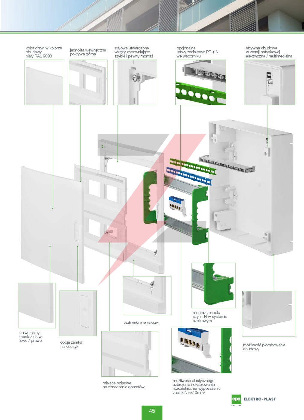 Rozdzielnica modułowa natynkowa elektryczna ELEGANT 2x12 N+PE drzwi przezroczyste 2425-01